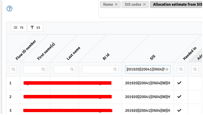 1. Filter the participant list to only show participants from the given SIS code. Eventually, filter the list for participants handed in too.