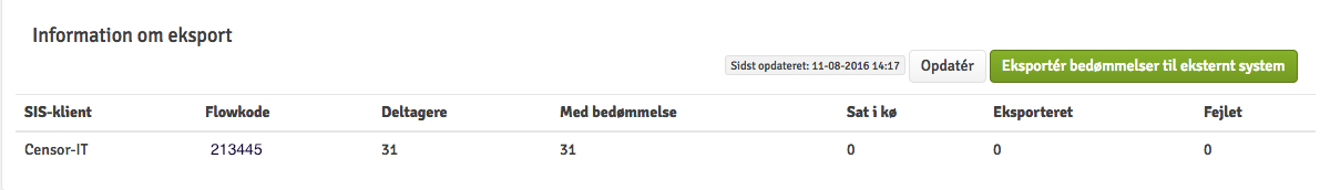 Når karaktererne eksporteres til Censor-IT, eksporteres de som en vurderingsfordeling, hvilket betyder, at antallet af hver af de specifikke vurderinger eksporteres.