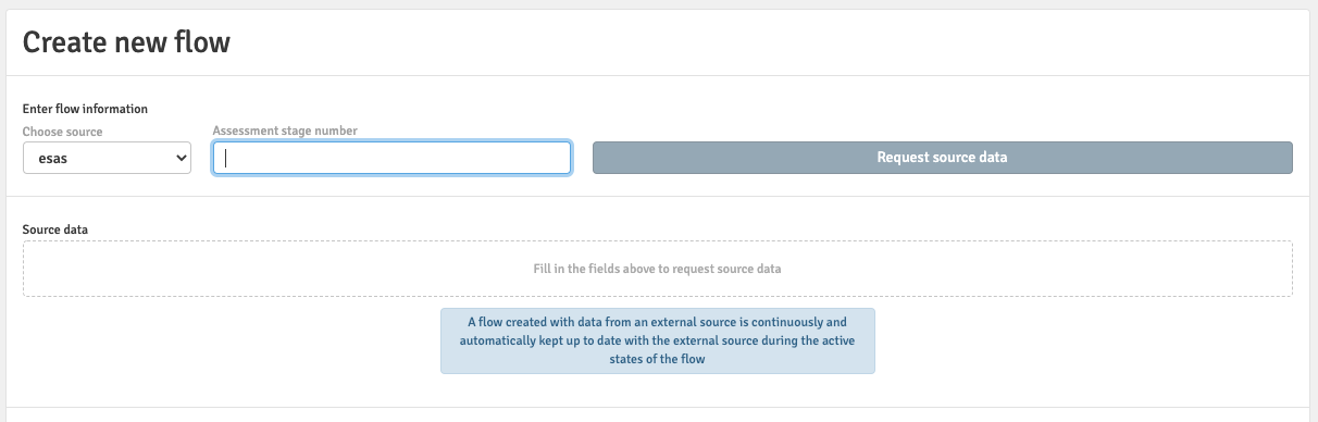 To set up a flow with data from ESAS choose 'esas' as a source:
