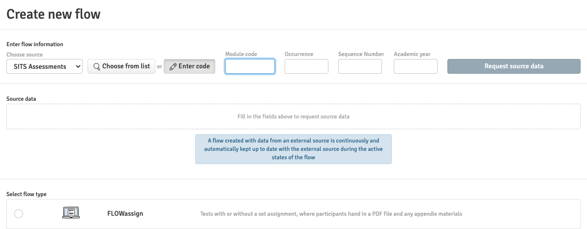 To set up a flow with data from SITS choose 'SITS Assessment' as a source: